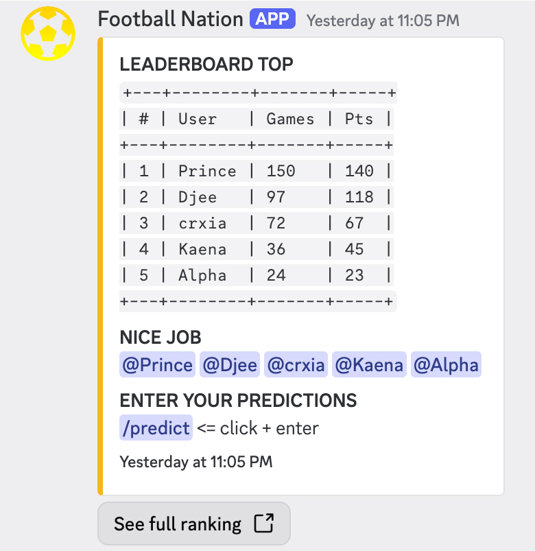 Organize your own prediction games, manage notifications, customize the bot style, make it look like it's your own bot...